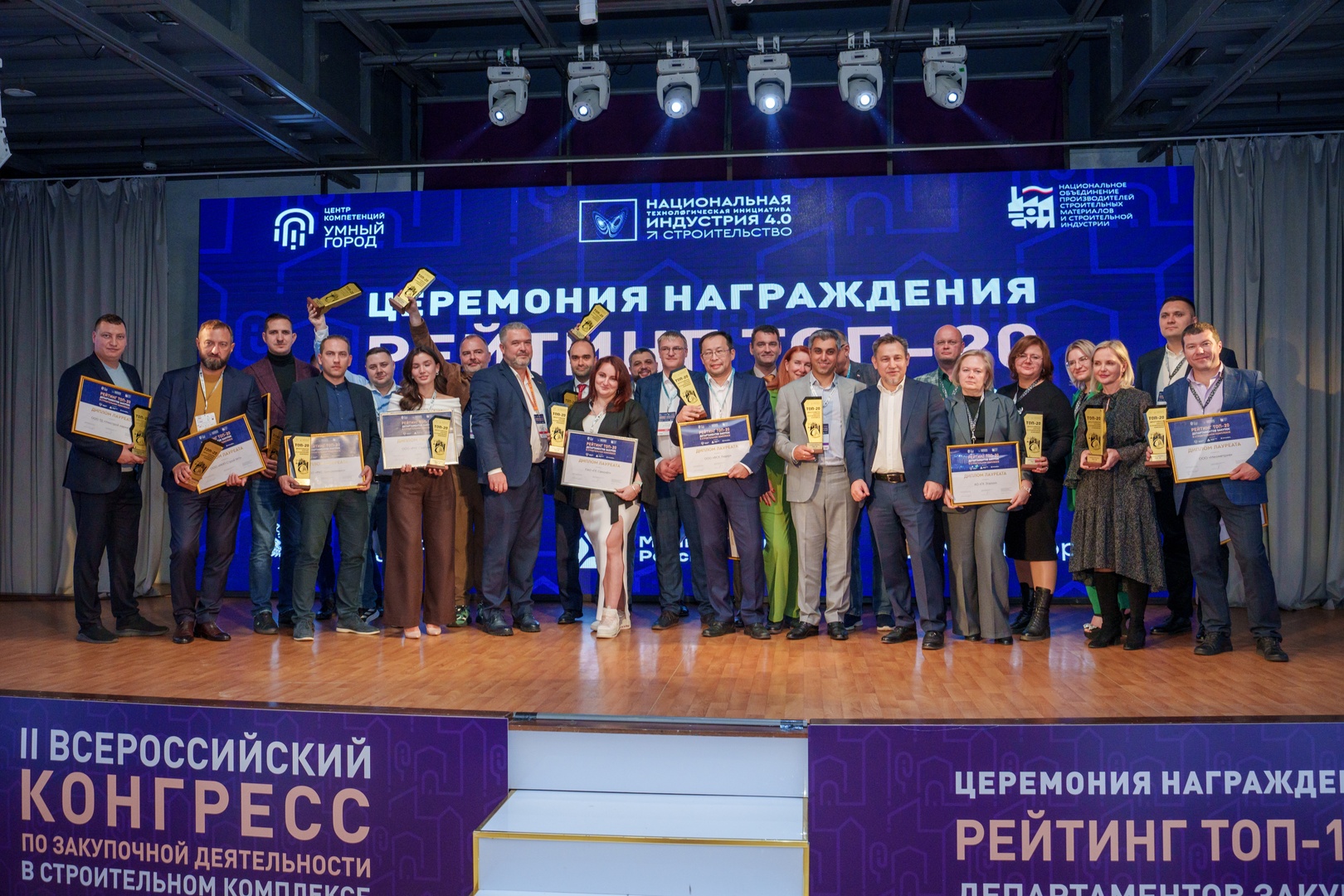 Церемония награждения победителей Национального рейтинга «ТОП-100 департаментов закупок строительного комплекса» стала кульминацией Конгресса. С трибуны прозвучали имена компаний, чья закупочная деятельность стала эталоном для всей отрасли.
