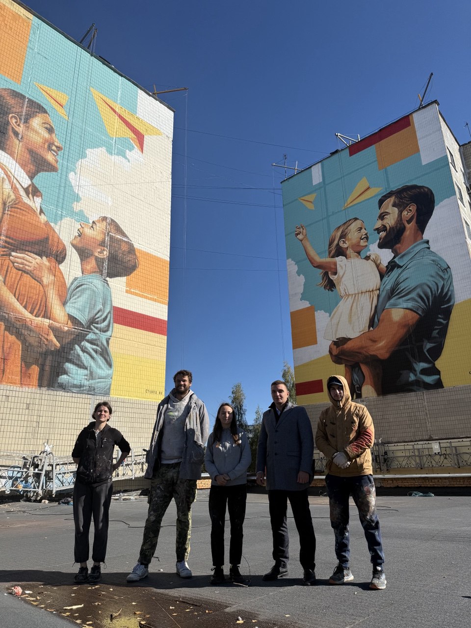 Напомним, жителям Правобережья было предложено на выбор четыре пары муралов. Общей темой для них стала счастливая семья. Уличные художники реализовали тот проект, который получил больше всего голосов.