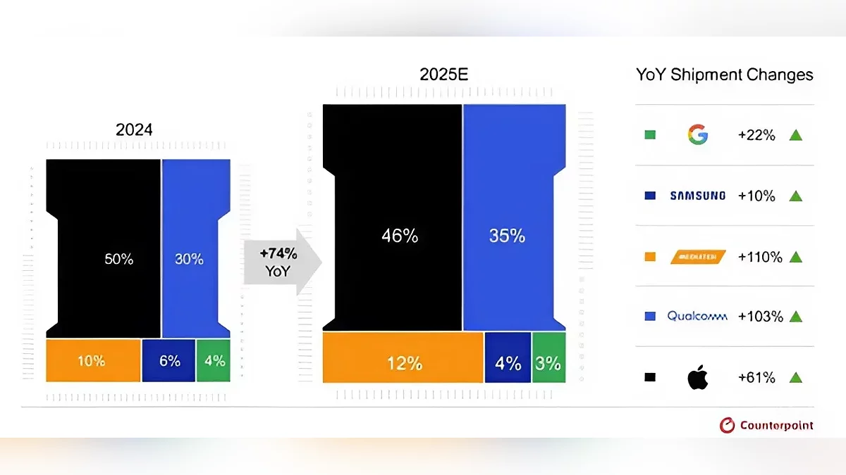 При этом объем поставок таких «умных» процессоров за год вырос на 74% и технология, которая еще недавно была экзотикой для топовых флагманов, стремительно переходит в средний и бюджетный ценовой сегмент. Лидером в этом сегменте стала компания Apple, которая захватила 46% рынка. За ней следует Qualcomm с показателем 35%, а третье место занимает MediaTek с 12%.
