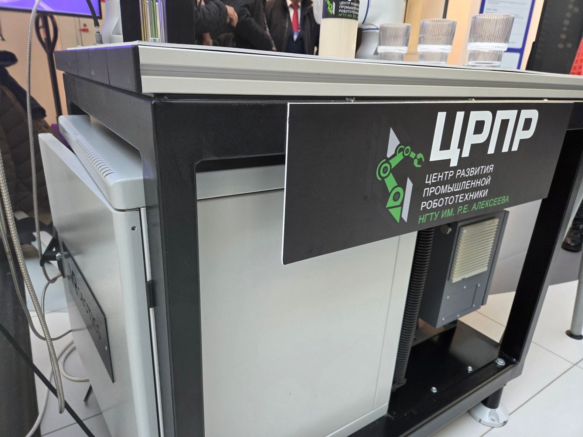 На стенде Центра представлены передовые решения в области автоматизации и «умных» производств — такие как роботизированная сварочная ячейка (совместная разработка НГТУ и ООО «ВР роботикс»), VR-тренажер для обучения сварке (совместная разработка НГТУ и ООО «ПКФ „Бк-студия“), аппаратно-программный комплекс диагностики и предиктивной аналитики узлов робототехнического комплекса (разработка НГТУ), а также коллаборативная робототехническая ячейка с системой технического зрения и адаптивными мягкими захватами для манипулирования хрупкими стеклянными изделиями (разработка НГТУ), где два робота с мягким захватом демонстрируют бережную упаковку хрупких стеклянных изделий и контроль качества.