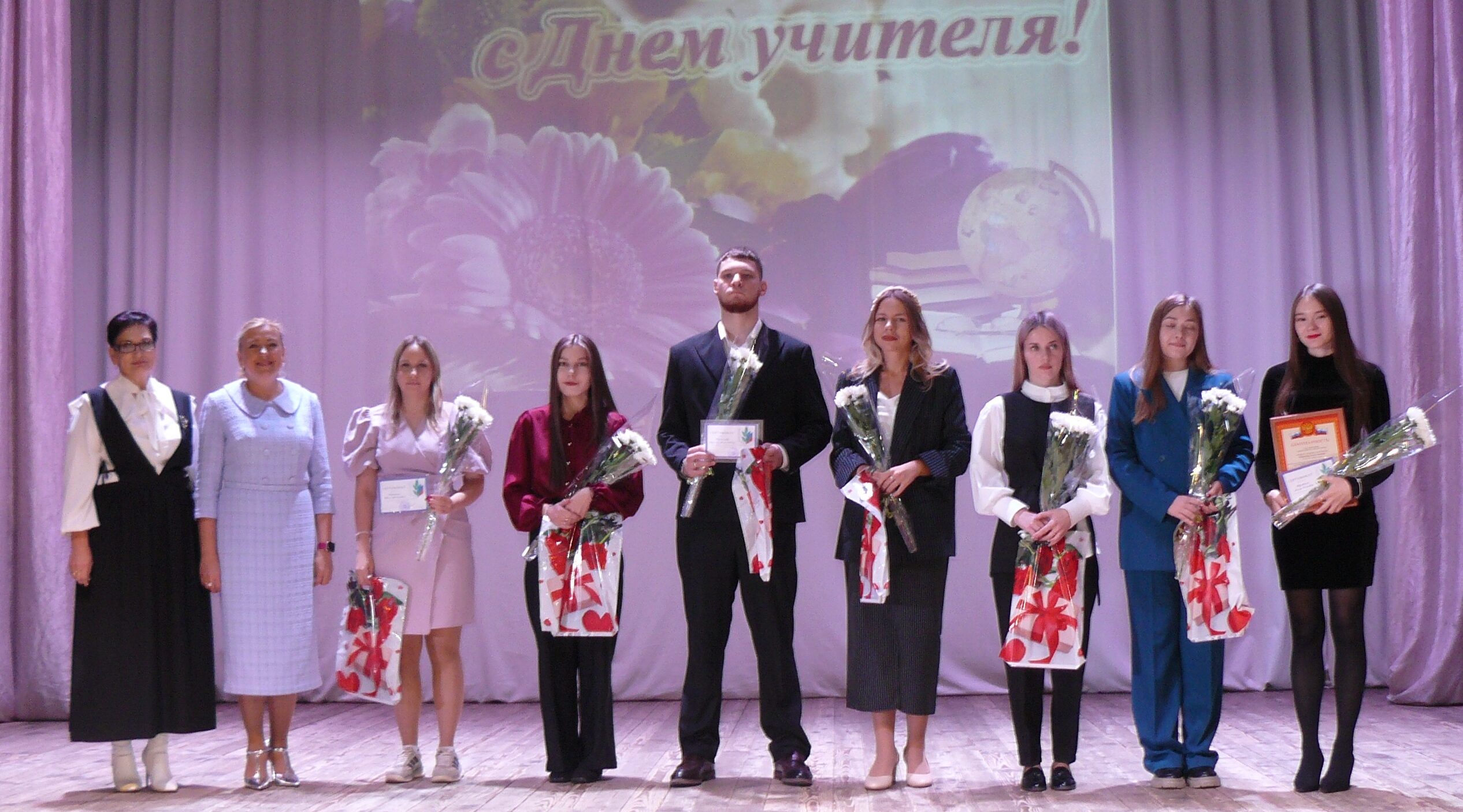 Зрители тепло приветствовали коллег с награждение, самые большие аплодисменты звучали в адрес молодых педагогов, среди которых была и победительница областного конкурса «Дебют — 2025» Алиса Жуковская.