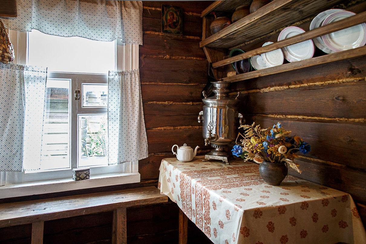 Многие посетители, оказавшись в избе Есениных, поражаются, насколько она маленькая. Небольшие комнатушки, печка, малюсенькая кухонька... Все очень скромно, но именно так и выглядели тогда крестьянские избы. "История усадьбы начинается с конца XIX века, когда дед по отцовской линии, Никита Осипович Есенин, решил отделиться от семьи. Он купил в центре села участок, но настолько маленький, что построить на нем можно было только дом — ни сарай, ни амбар уместить было негде, — продолжает Ирина Викторовна. — Тогда дед поэта принял неординарное решение: он построил двухэтажный дом. На первом этаже не было ни одного окна — это было подсобное помещение. Второй этаж был жилой. Именно в этом необычном для села доме и родился будущий поэт. Уже много позже, когда дом обветшал, родители поставили новый дом, одноэтажный, как у всех. Сергею тогда было 14 лет". В семье Есениных все были домовитыми, хозяйство у них было, как принято говорить в деревне, крепкое. В воспитании Сергея немалое участие принимали дяди — братья матери, и, конечно, особое значение для Сергея имел дед, Федор Андреевич Титов. "Оглядываясь на весь пройденный путь, я все-таки должен сказать, что никто не имел для меня такого значения, как мой дед. Ему я больше всего обязан. Это был удивительный человек. Яркая личность, широкая натура, умственный мужик", — писал Есенин.