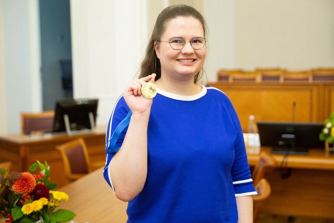 Двум молодым людям, ставшим медалистами два года подряд, дипломы, медали и призы вручила директор по работе с одаренными учащимися НИУ ВШЭ Тамара Протасевич.