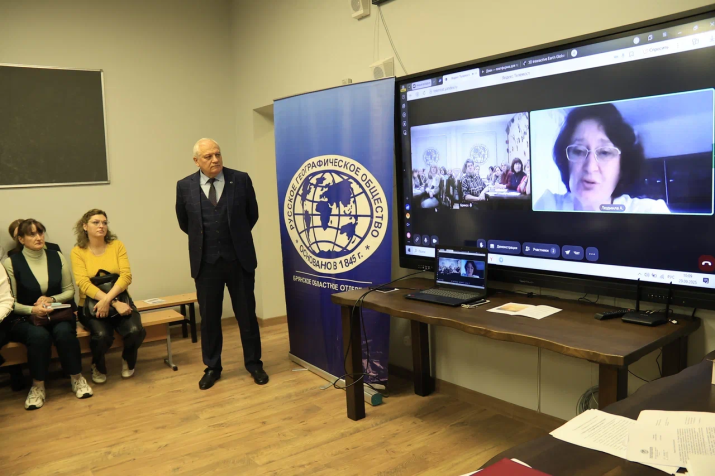Открыл семинар председатель Брянского областного отделения РГО Олег Заварзин, докладом «Русское географическое общество в образовательном пространстве Брянской области. Этапы пути, перспективы развития»