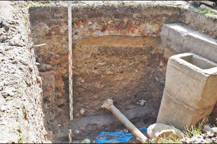 В частности, археологи нашли под позднейшими техногенными напластованиями мостовую главной улицы форштадта Кнайпхофа XV-XVI вв., конструкцию, относящуюся к реконструкции Зеленого моста в 1907 г. и строительный горизонт, относящийся к сооружению в 1870-х гг. здания Биржи Кёнигсберга. В районе Московского проспекта (в восточной части бывшего Альтштадта) на глубине 2,5 м были обнаружены захоронения. Археологи отмечают, что они «принадлежат кладбищу при первом Кафедральном соборе Самбийской епархии (построен на рубеже XIII-XIV в.) и/или кладбищу при госпитале Св. Духа, действовавшем в 1286-1528 гг.» Таким образом, говорится в выводах экспертизы, был выявлен некрополь периода Тевтонского ордена, XIII-XVI вв.