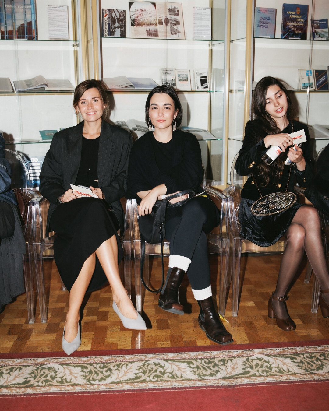 Фиксируем восхитительный guest-лист! В коридорах библиотеки были замечены светская дива Ирина Оганова, актриса Юлия Пересильд, селебрити-стилист Олег Горчанин, сверхновые кинозвезды Слава Копейкин и Григорий Верник, готическая pregnancy-принцесса Вика. Не обошлось и без арт + фэшн звезд Петербурга — дизайнеров Леонида Алексеева, Яниса Чамалиди, Ольги Гинзбург, а также идеолога музея «Полторы комнаты» Юлии Сениной художника Сергея Бондарева и великой прима-балерины Марии Абашовой.