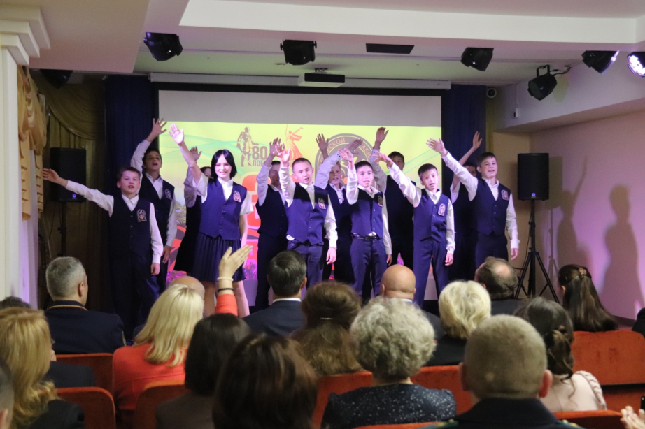 В исполнении воспитанников участники праздника увидели танцевальную композицию "Флаг России", театрализованную постановку "Василий Теркин 1945-2025". Также гостям представили видеофрагмент образовательной экспедиции в город-герой Москву.