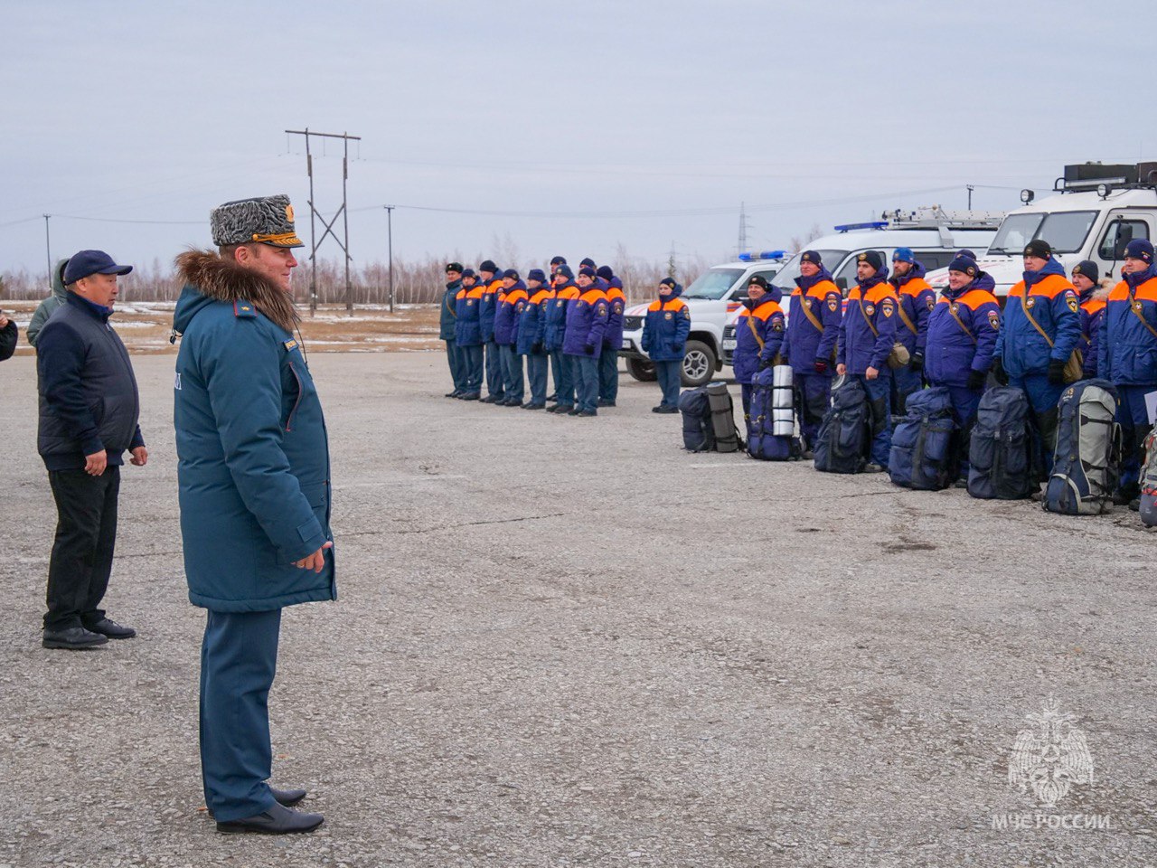 И, конечно, во время общего сбора состоялся смотр готовности сил и средств гражданской обороны Якутской территориальной подсистемы РСЧС.