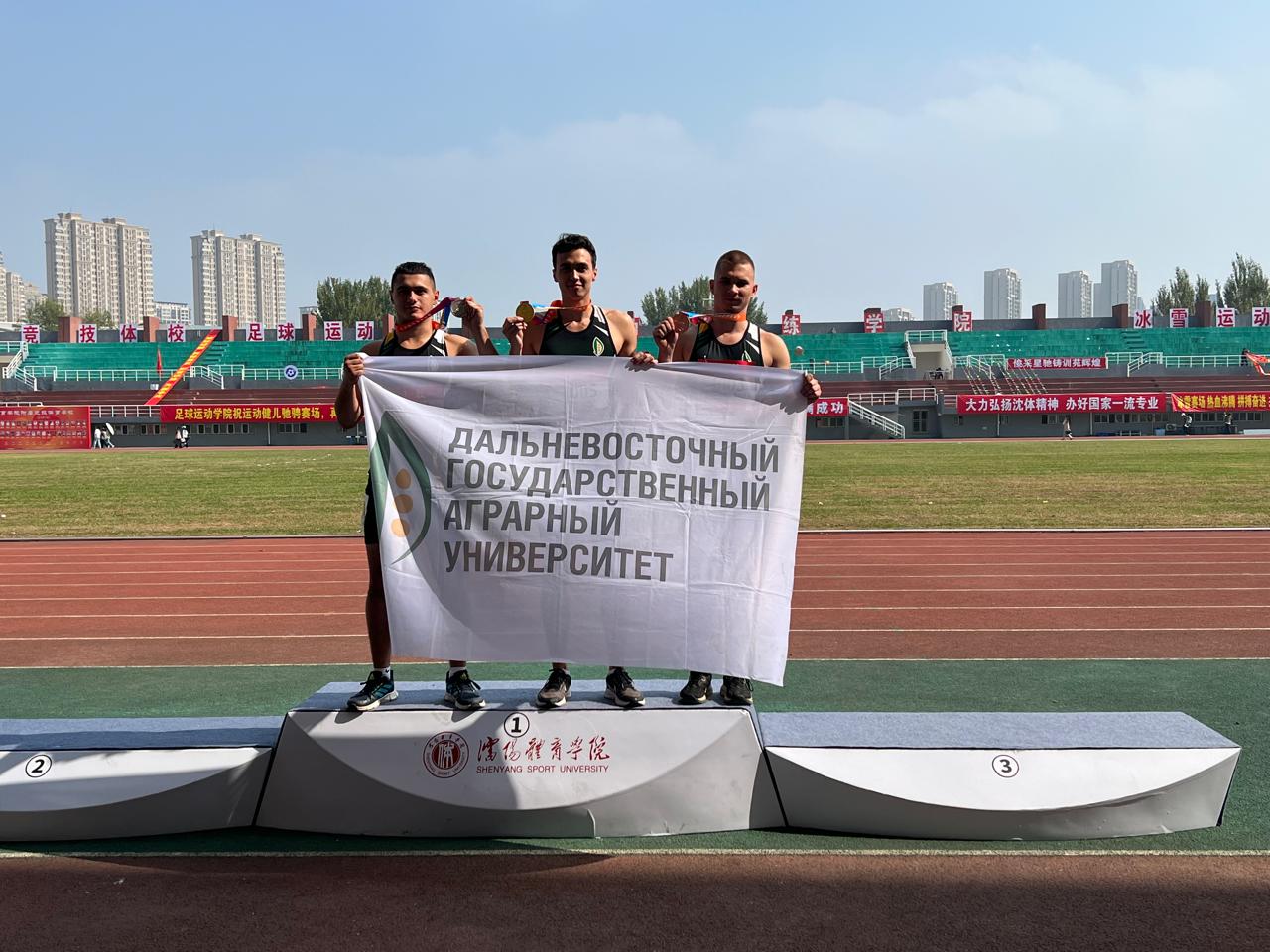 С 27 сентября по 2 октября 2025 году в городе Шэньян (КНР) проходили 62-е игры по легкой атлетике Шэньянского института физической культуры. Сборная команда студентов Дальневосточного ГАУ под руководством тренера, старшего преподавателя кафедры ФКиС Калининой Виктории Вячеславовны представили университет и составили достойную конкуренцию как китайским командам, так и студентам вузов ДФО.