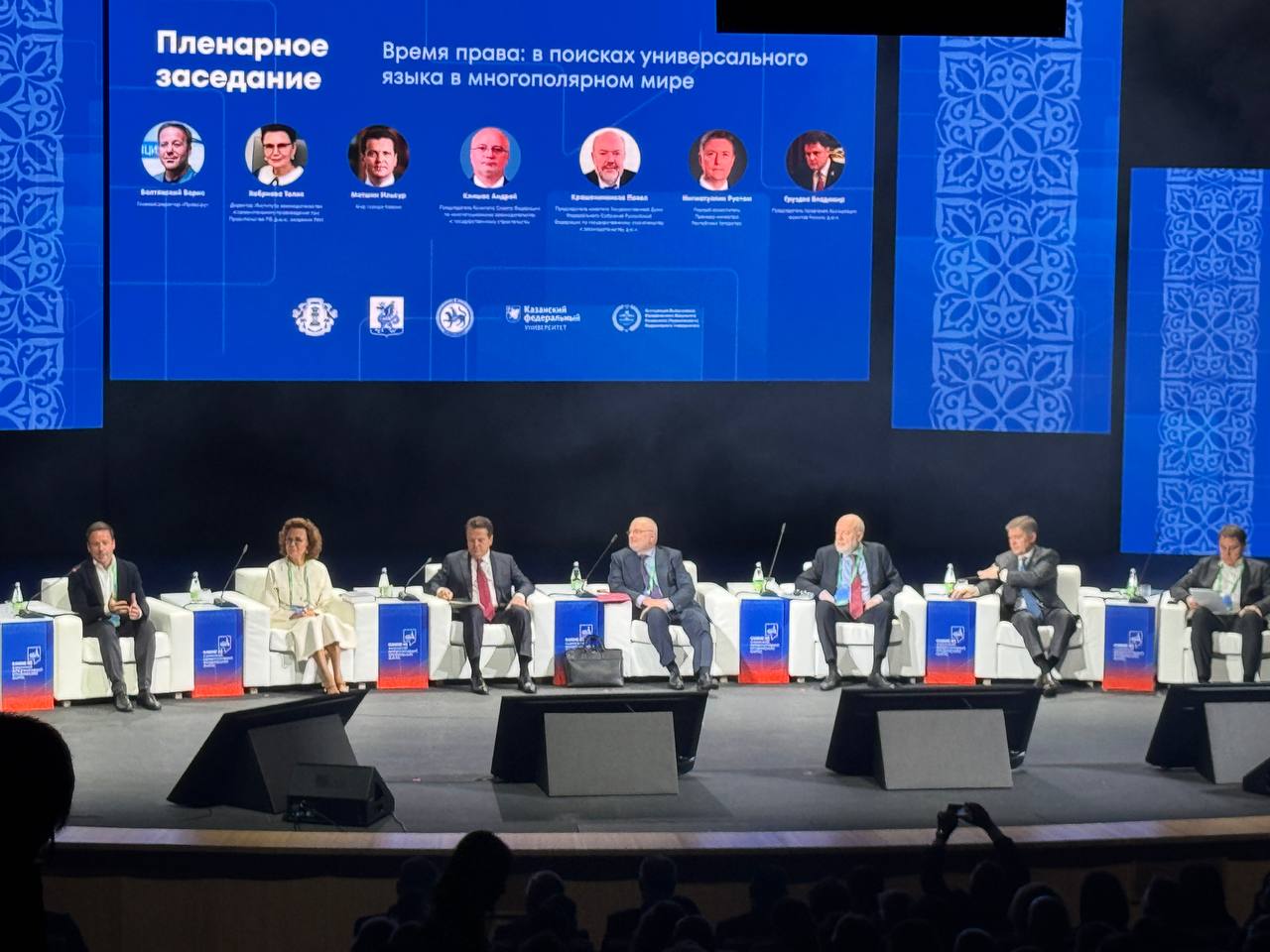 Среди участников также председатель комитета Совета Федерации по конституционному законодательству и государственному строительству Андрей Клишас, первый заместитель премьер-министра РТ Рустам Нигматуллин, мэр Казани Ильсур Метшин, председатель татарстанского реготделения ассоциации юристов России Ильдар Халиков. Здесь же находятся директор института законодательства и сравнительного правоведения при правительстве РФ Талия Хабриева и председатель правления ассоциации юристов России Владимир Груздев.