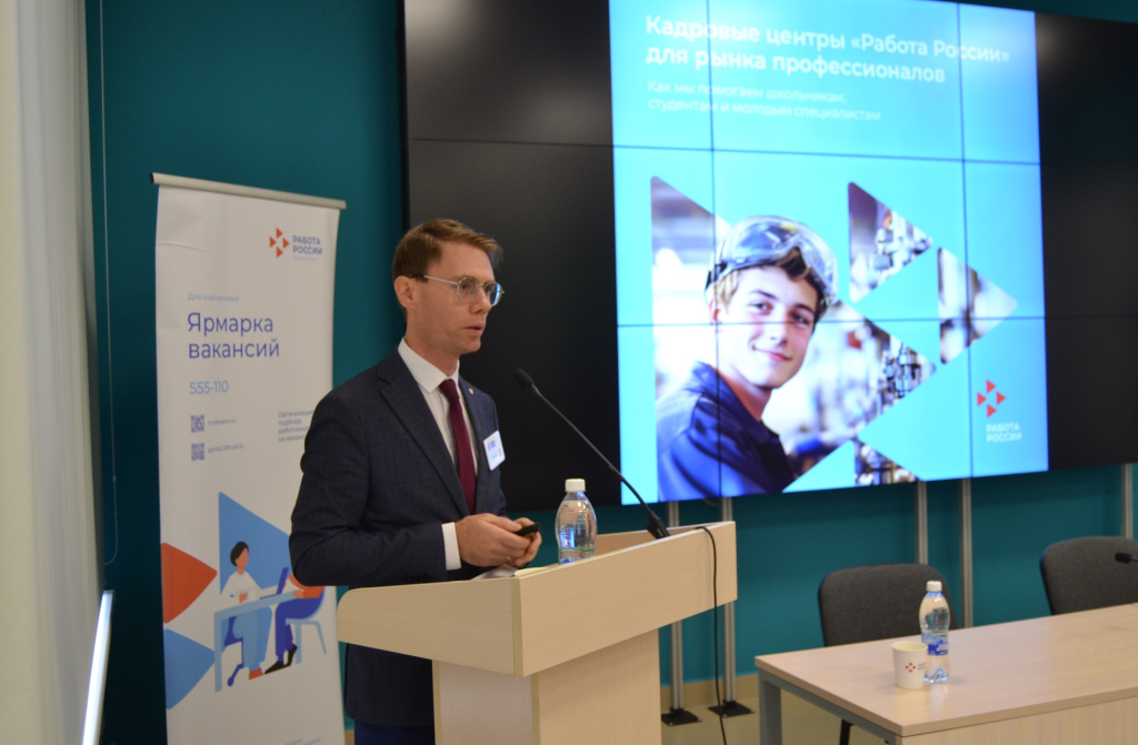 Илья Бень, представитель Кадрового центра «Работа России», познакомил участников мероприятия с сервисами платформы «Работа России», на которых можно не только искать вакансии, но и напрямую общаться с работодателями.