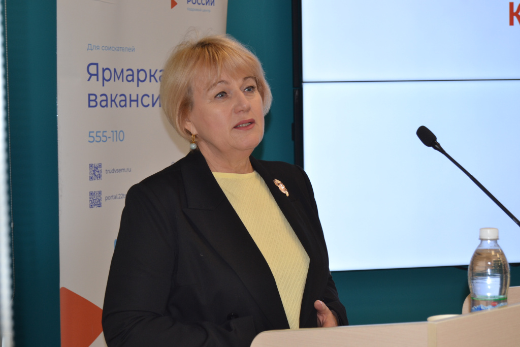Также со словами приветствия выступила начальник управления Алтайского края по труду и занятости населения Надежда Капура: