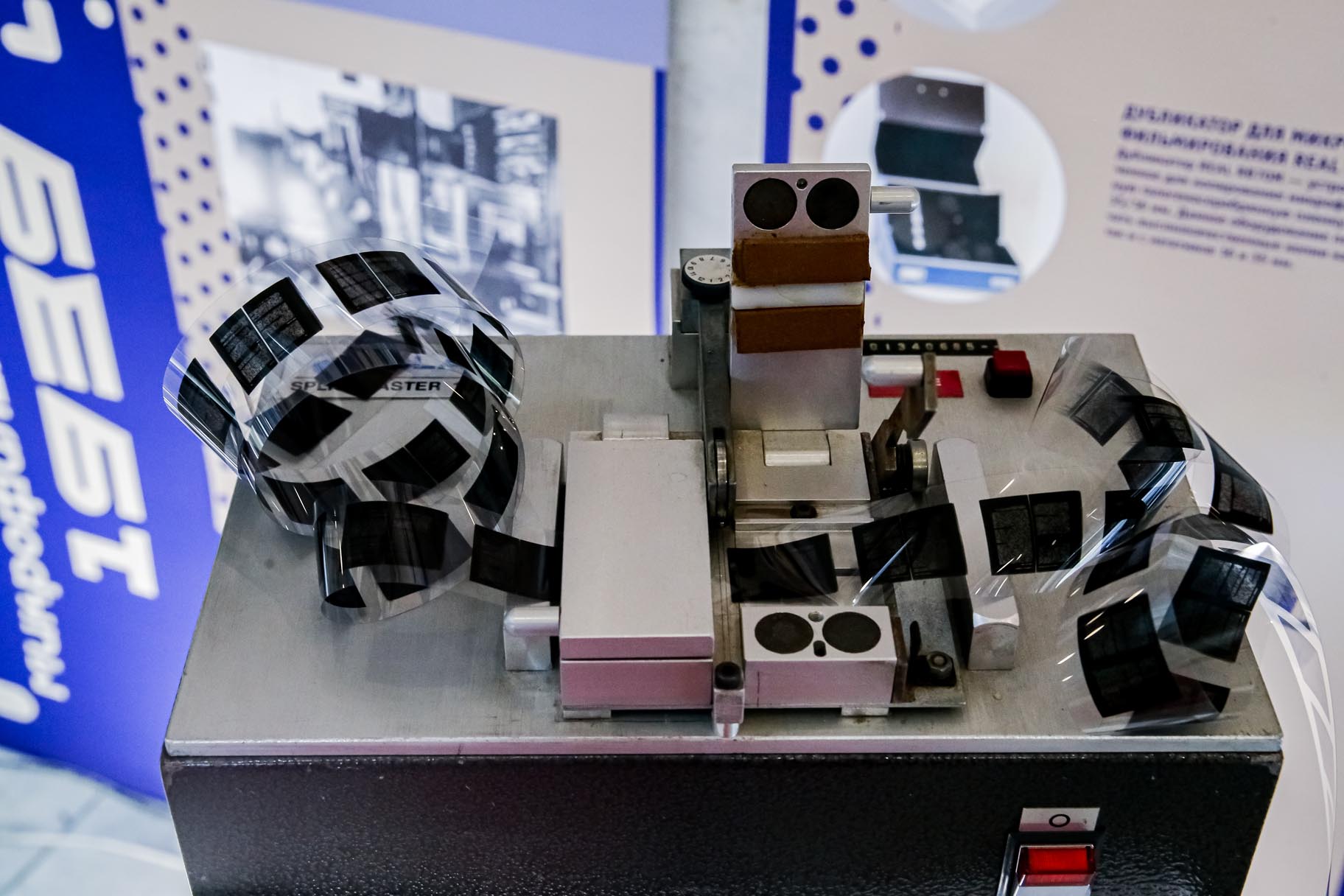 Посетители выставки могут почувствовать себя в роли оператора оцифровки: заправить микрофильм в сканер, пленку в бобину, микрофишу в проектор.