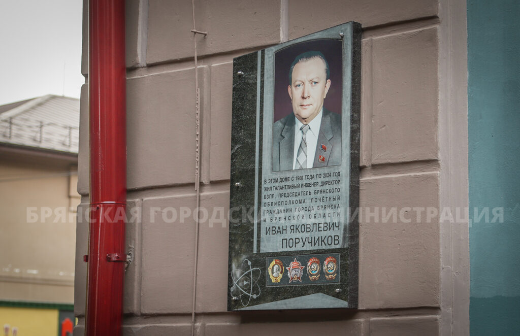 Памятная доска видному государственному деятелю, талантливому инженеру, Почётному гражданину города Брянска и Брянской области появилась на доме №45/9 по улице Луначарского. На первом этаже здания, где Иван Поручиков прожил с 1960 по 2024 годы, сейчас работает городская спортшкола по шахматам и шашкам.