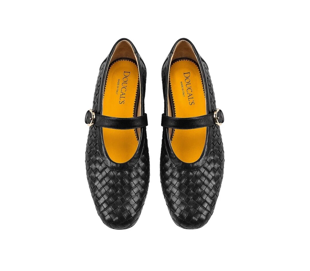 Ледикорная фэшн-альтернатива пятипалым кроссовкам — готические подкрадули Doucal’s, которые потомственные итальянские обувщики снабдили акцентной пряжкой и виртуозным интречато-плетением (для безупречного комбо с ультрамодными плетеными тоутами!).