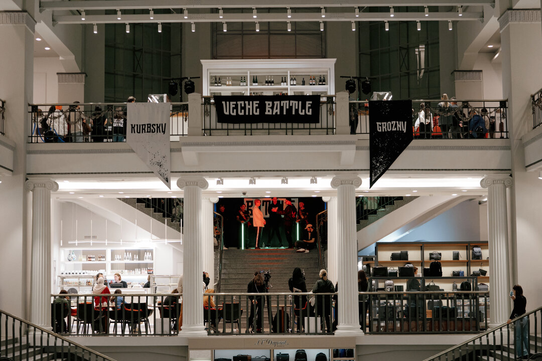 В ДЛТ прошел заключительный показ режиссерской лаборатории «Театр вне театра» под кураторством Никиты Кобелева — VECHE BATTLE. Grozny vs Kurbsky. Увидеть постановку режиссера Максима Максимова по пьесе Настасьи Федоровой, основанной на переписке Ивана Грозного и Андрея Курбского, пришли Артём Балаев, Ксения Гощицкая, Полина Хервонен и другие. Событие проходило в рамках сотрудничества ДЛТ с лабораторией «Театр вне театра». Проект предоставлял молодым режиссерам разработать идею спектакля для нетеатрального пространства и реализовать задумку на площадке.