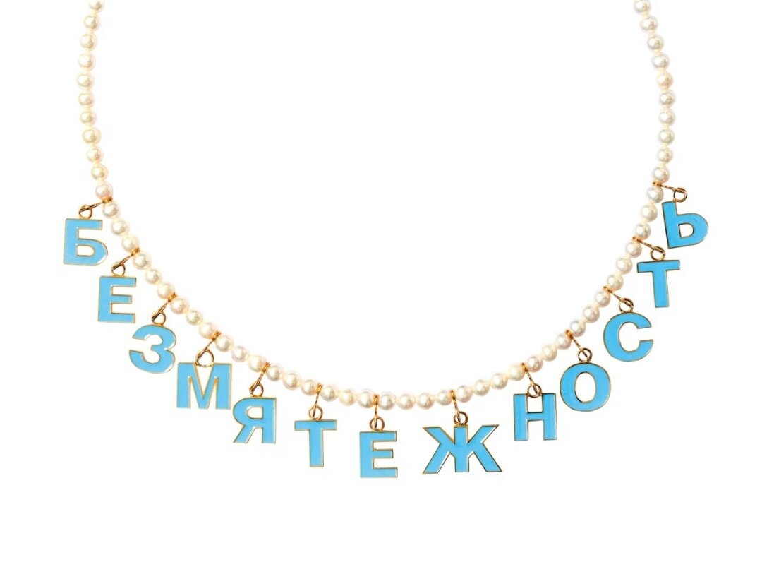 Наша фэшн-аффирмация на октябрь — колье «Безмятежность» (ювелирный шоустоппер отгремевшего Cosmoscow!), которое художница Алина Глазун сложила из небесно-голубых (и невероятно чиловых!) буквиц.