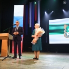 По традицииВадим Шумковвручил цветы своей первой учительнице Нине Александровне Новосёловой.