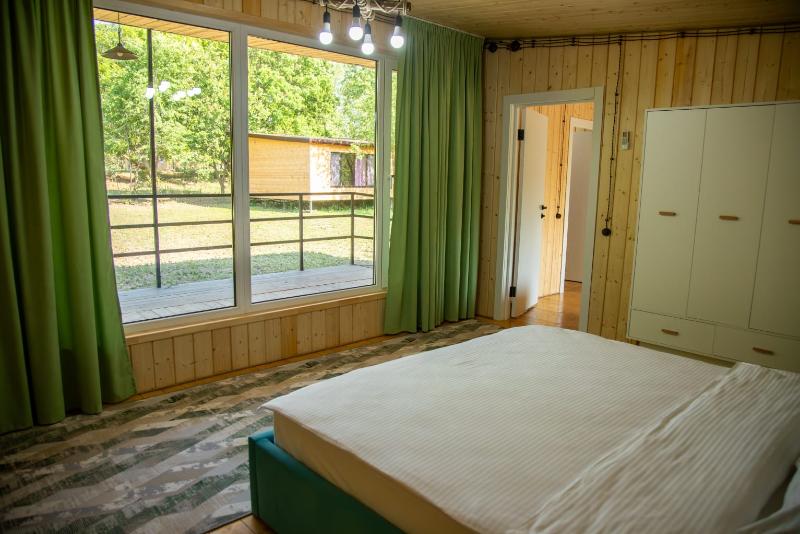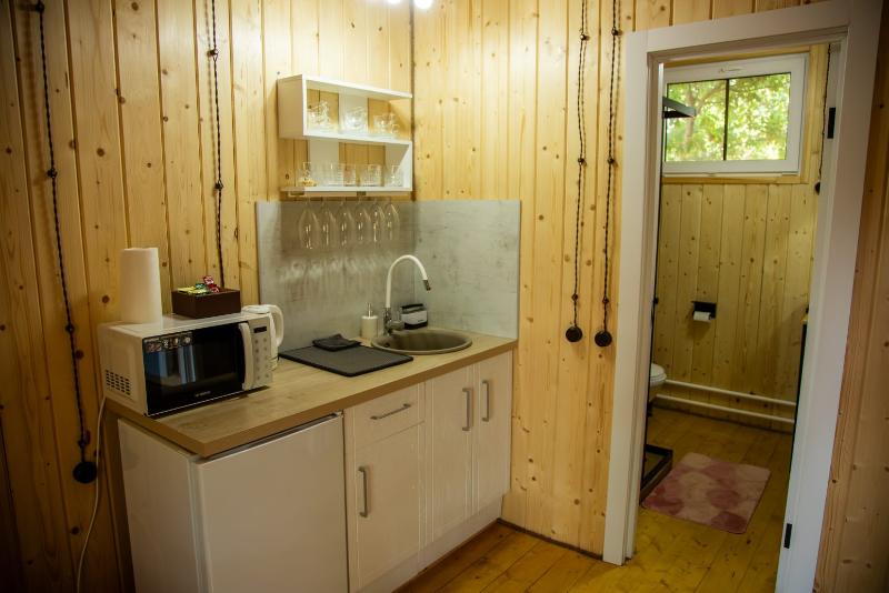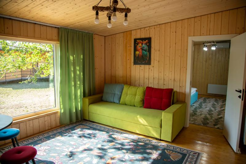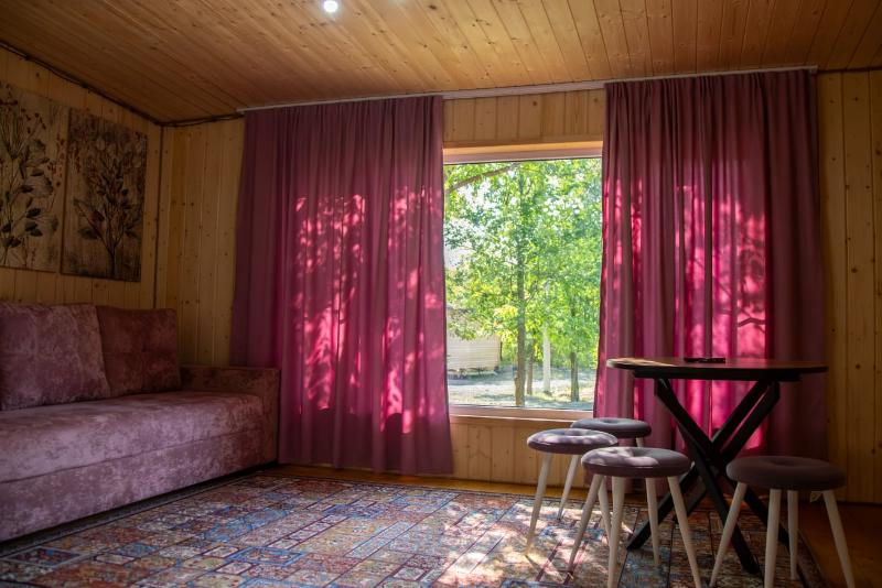 Площадь каждого домика – 42 м², которые рассчитаны на четыре человека. Тут есть все необходимое для незабываемого отдыха. Спальня с большой двуспальной кроватью, свежим бельем и шкафом, гостиная с удобным диваном, раскладывающимся в полноценное спальное место. Полностью оборудованная кухонная зона. В каждом из домиков Вы сможете насладиться бесконечным комфортом.На территории «Дубовой лапы» оборудована мангальная зона и детская игровая площадка. Приготовьте шашлык и наслаждайтесь звуками природы, расположившись прямо на оборудованной террасе, пока ваши дети играют на свежем воздухе.