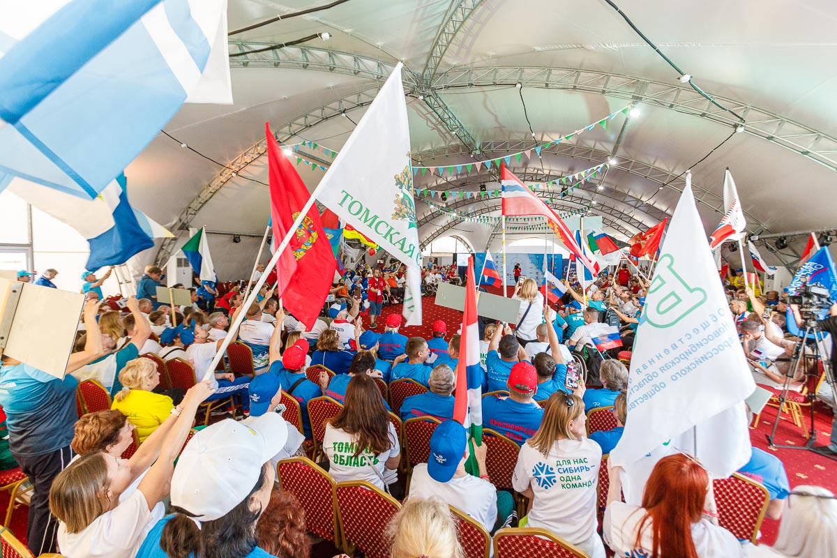 А тем временем в шатре «Омега Холл» уже собирались участники фестиваля. Все они пришли на церемонию открытия в приподнятом настроении, в разноцветных футболках, с флагами своих регионов.