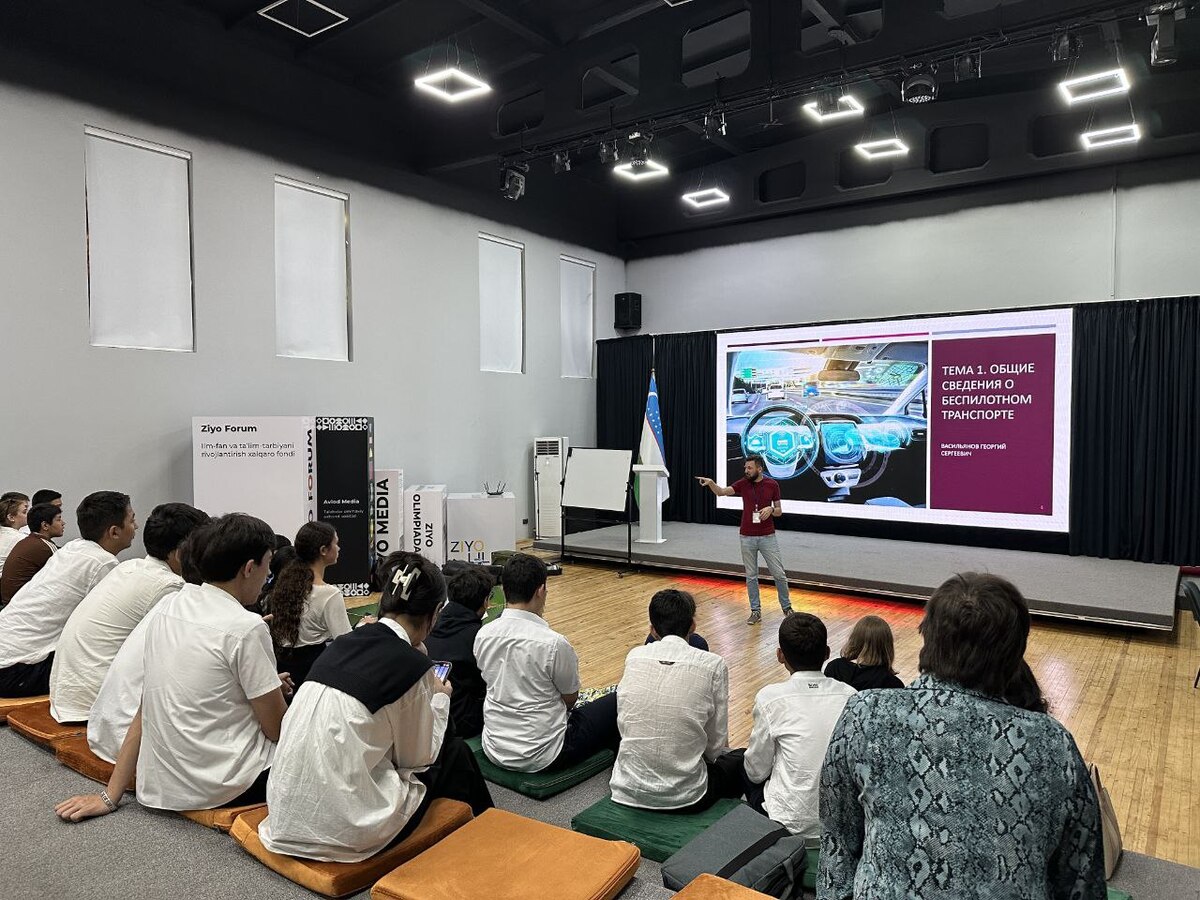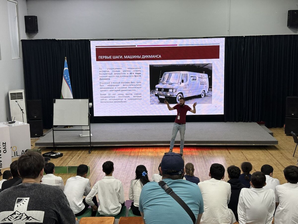 «Миссия: наземный беспилотник» – под таким названием прошёл мастер-класс Георгия Васильянова, который вызвал большой интерес у ташкентских школьников и педагогов. Участники не только познакомились с техническими возможностями робота, но и смогли поучаствовать в практическом задании: собрать собственную конфигурацию беспилотника в формате мини-игры «Собери беспилотник». Школьники активно задавали вопросы о технической реализации и проявили неподдельный интерес к профессии инженера.