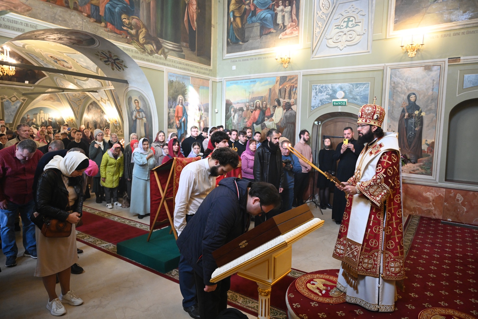 Высокопреосвященнейшему Владыке сослужили: протоиерей Максим Козлов, председатель Учебного комитета Русской Православной Церкви, ректор Общецерковной аспирантуры и докторантуры, настоятель Патриаршего Черниговского подворья; протоиерей Николай Балашов, советник Патриарха Московского и всея Руси, настоятель храма Воскресения Словущего на Успенском вражке; архимандрит Афанасий (Соколов), ректор Минской духовной академии; игумен Иоанн (Лудищев), ректор Сретенской духовной академии; игумен Дионисий (Шленов), наместник Андреевского ставропигиального монастыря г. Москвы; протоиерей Сергий Селезнев, благочинный Москворецкого церковного округа г. Москвы, настоятель храма Архангела Михаила в Овчинниках; протоиерей Игорь Выжанов, заместитель председателя ОВЦС, настоятель храма в честь иконы Божией Матери «Всех скорбящих Радость» на Большой Ордынке г. Москвы; иеромонах Лука (Пронских), и.о. ректора Николо-Угрешской духовной семинарии; иерей Дмитрий Гамиловский, ректор Смоленской духовной семинарии; иеромонах Андрей (Коротков), ректор Таврической духовной семинарии; протоиерей Алексий Марченко, начальник отдела докторантуры ОЦАД, и.о. настоятеля храма священномученика Климента папы Римского в Замоскворечье; иерей Павел Лизгунов, проректор по учебной работе Московской духовной академии; иеромонах Мелитон (Павлов), проректор по воспитательной работе Санкт-Петербургской духовной академии; иеромонах Ириней (Пиковский), и.о. проректора по научно-богословской работе Сретенской духовной академии; протоиерей Андрей Милкин, настоятель храма святого великомученика Димитрия Солунского на Благуше; протоиерей Сергий Звонарев, настоятель храма святых мучеников и страстотерпцев Бориса и Глеба в Зюзине; иерей Михаил Желтов, настоятель храма Рождества Христова в Митино; иерей Илия Соловьев, клирик храма Живоначальной Троицы в с. Дьячево; иерей Дмитрий Данилов, ответственный за работу с вузами и научным сообществом Центрального викариатства; иеродиакон Тихон (Кусов), начальник учебно-методического отдела Сретенской духовной академии, а также клирики Черниговского подворья и сотрудники Общецерковной аспирантуры и докторантуры в священном сане.