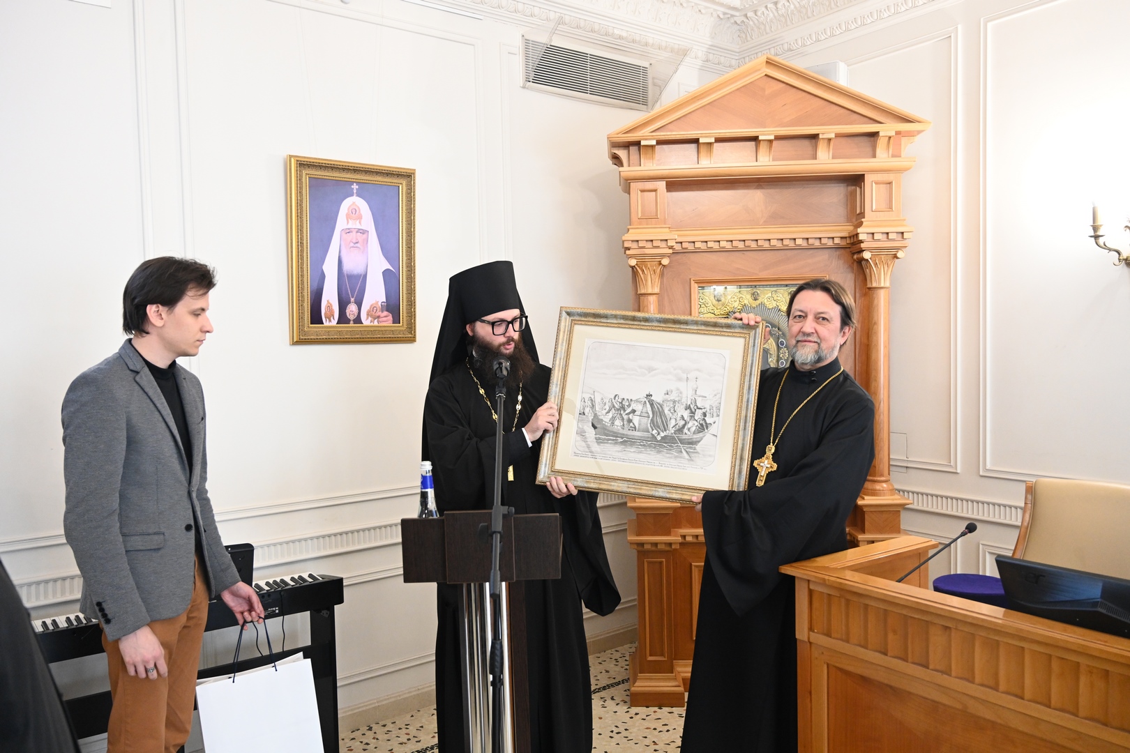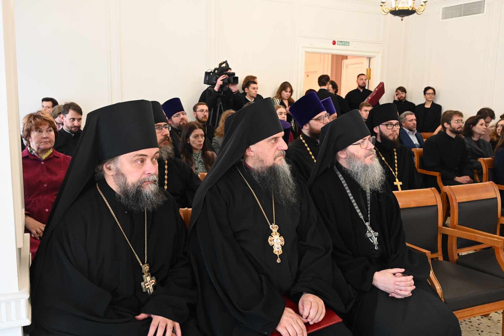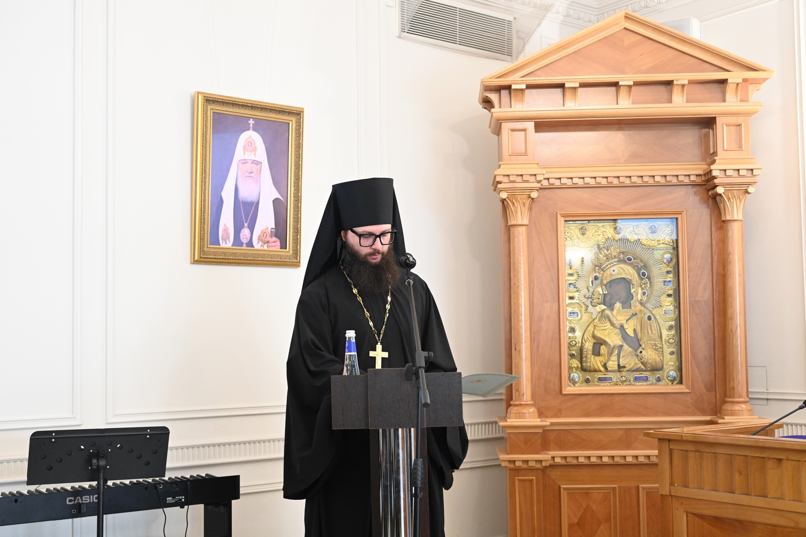 Проректор по воспитательной работе Санкт-Петербургской духовной академии иеромонах Мелитон (Павлов) огласил поздравительный адрес епископа Петергофского Силуана от имени Санкт-Петербургской духовной академии. «Обучение в стенах ведущего научно-богословского центра Церкви – это не просто интеллектуальная подготовка, но и глубокое личностное становление, школа ответственности за дарованное Богом слово. Именно здесь знание о Боге должно претворяться в живое богомыслие, а научный поиск сочетаться с верностью святоотеческому преданию», – подчеркнул ректор СПбДА в своем приветствии.