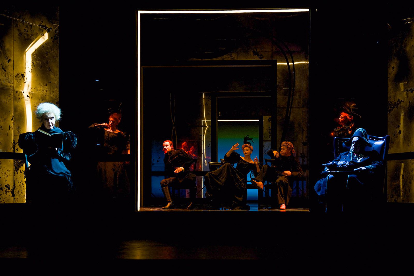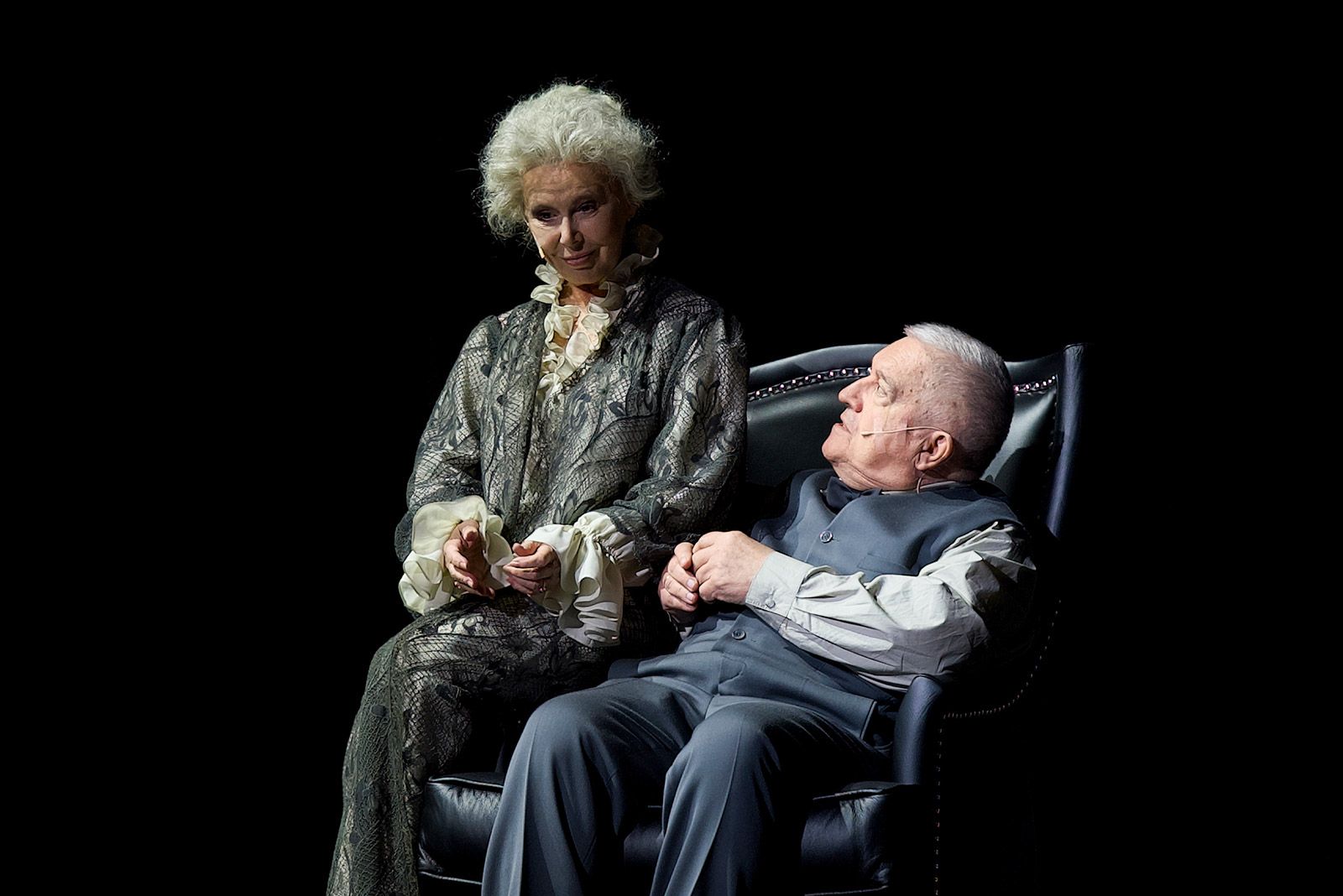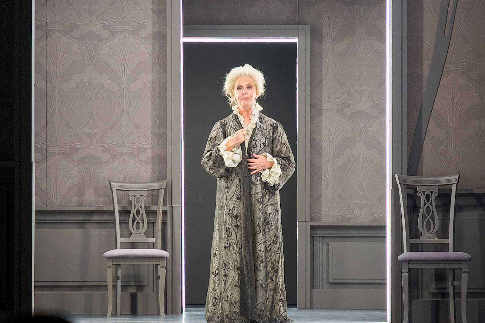Варвару Андреевну воплощает блистательная Евгения Симонова, и этот образ, созданный в повести несколькими пассажами, в постановке Дениса Хусниярова получает новое измерение. Если у Чехова рассказчиком выступает Николай Степанович, что производит эффект тотального погружения в чертоги разума и омут памяти человека, стоящего на краю смерти и драматично осознающего свое несчастье при внешнем благополучии, то в спектакле одинаковая по накалу эмоциональная нагрузка падает и на его супругу. В этом тонком отступлении постановочной группы от оригинала — ее милосердие по отношению к главному герою и тому состоянию, вырваться из которого он никак не может.