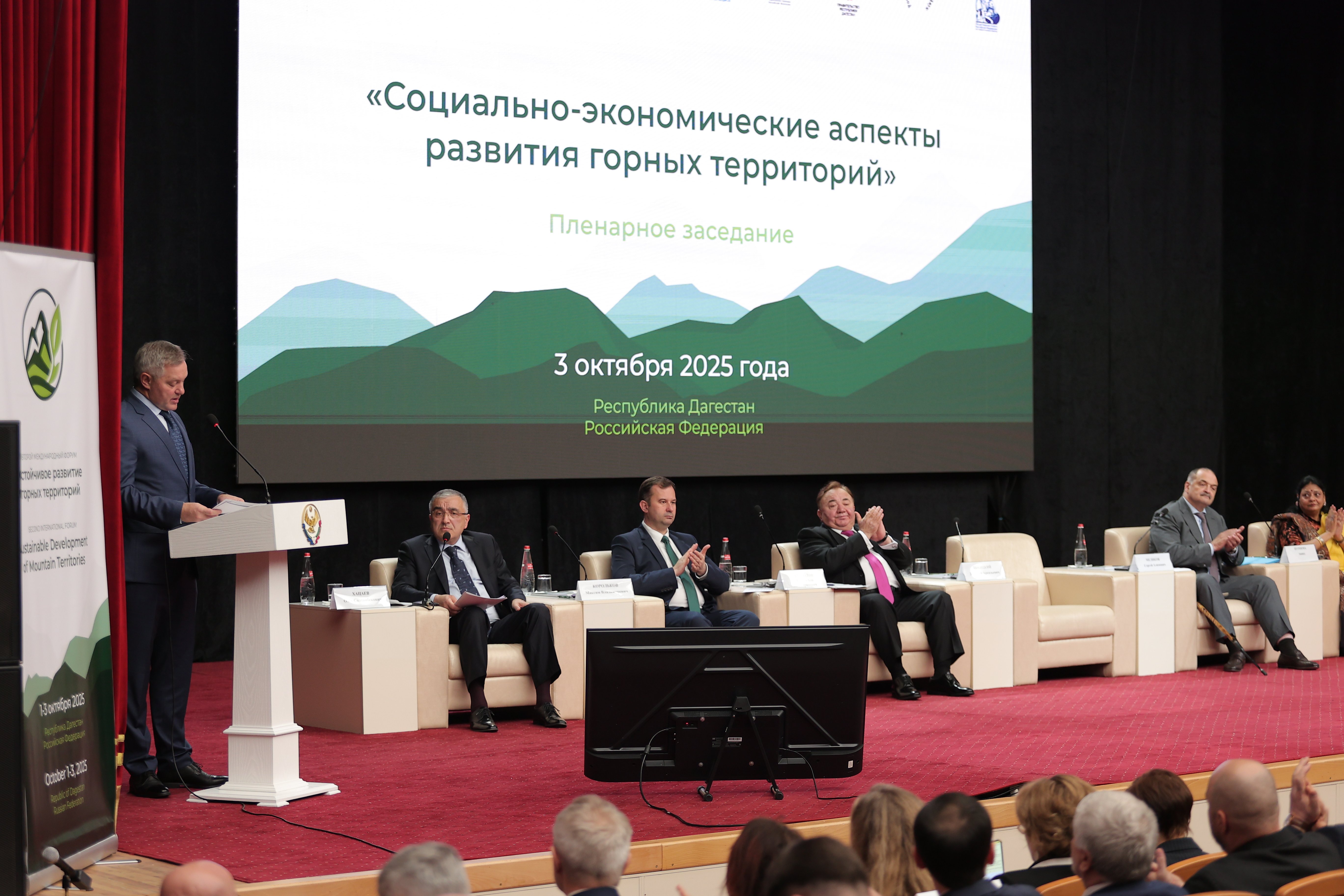 Ключевым событием завершающего, третьего дня II международного форума «Устойчивое развитие горных территорий» стало пленарное заседание «Социально-экономические аспекты развития горных территорий». В нем приняли участие заместитель Министра природных ресурсов и экологии Российской Федерации Максим Корольков, Генеральный секретарь Совета Межпарламентской Ассамблеи СНГ Дмитрий Кобицкий, президент Международного форума стран БРИКС Пурнима Ананд, Глава Республики Дагестан Сергей Меликов, Глава Республики Ингушетия Махмуд-Али Калиматов и многие другие.