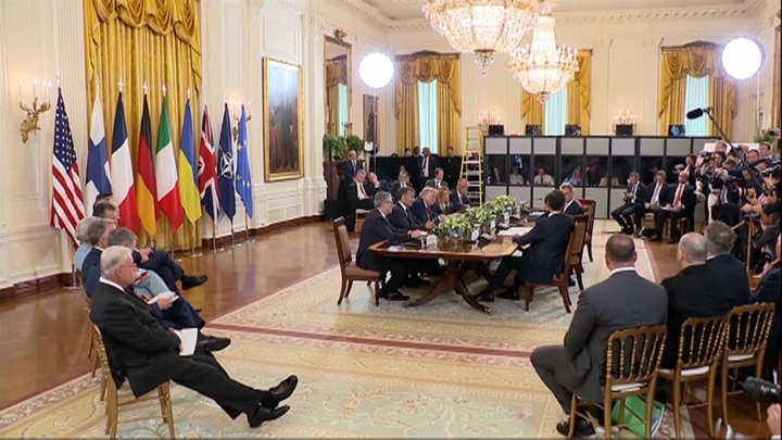 По его словам, когда президент США провел встречу с главой киевского режима Владимиром Зеленским, несколько европейских лидеров решили присоединиться к переговорам и их удалось запечатлеть на фото, сидящих вокруг президента.
