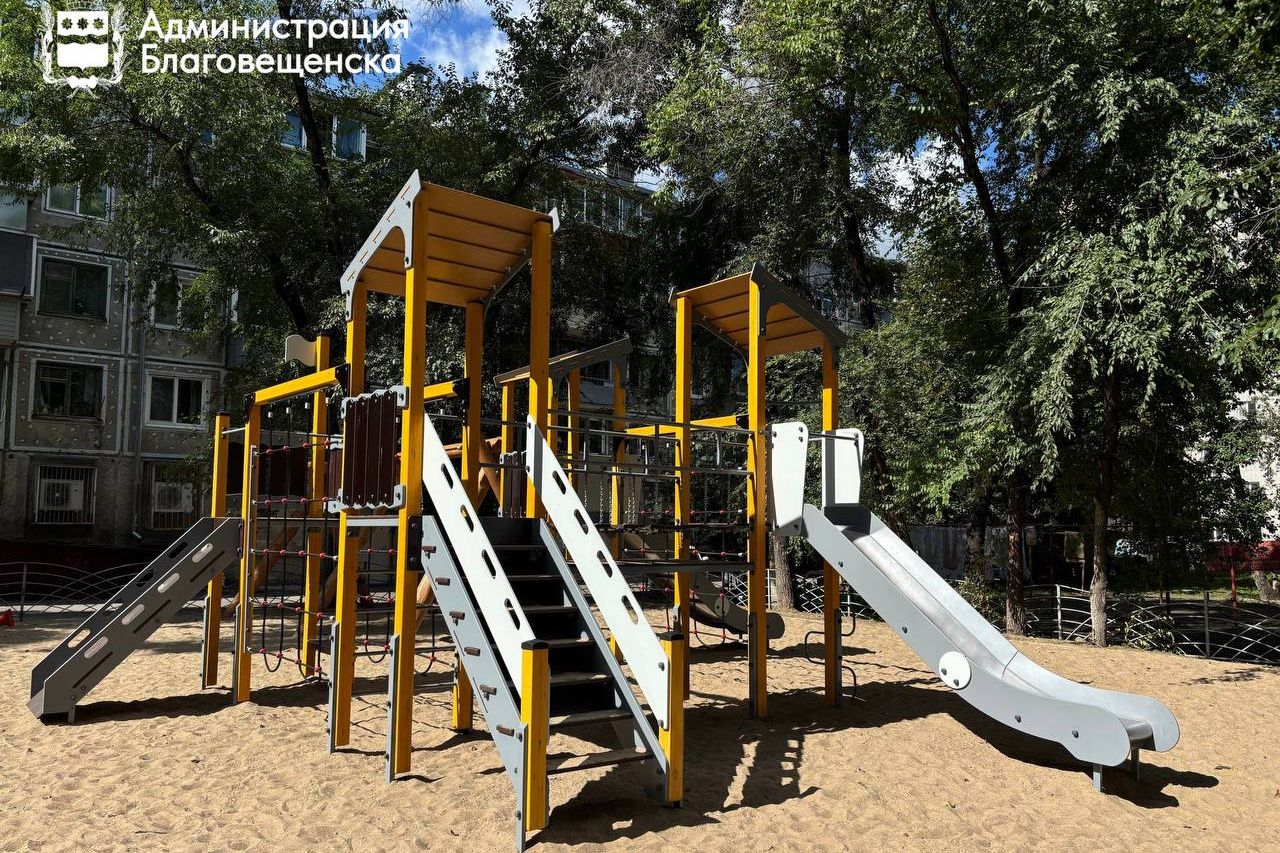 В Благовещенске завершили обновление дворовых территорий по адресам Чайковского, 26 и Пионерская, 3-3/1. На еще одной площадке — на Калинина, 130 — вскоре появятся детская площадка для ребят до семи лет, а также комбинированная детская и воркаут-площадки для занятий спортом. Обновление проводят по госпрограмме «Благоустройство дальневосточных дворов».