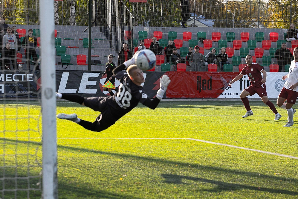 …Большую роль в уверенности номинальных хозяев сыграл быстрый гол. После двух угловых подряд с левого фланга Арсений Прокуроров ворвался в брошенную обороняющимися зону около правой штанги и вколотил мяч между штангой, телами вратаря Владислава Васильева и пары защитников, и мини-рикошеты не стали помехой на пути снаряда в сетку.