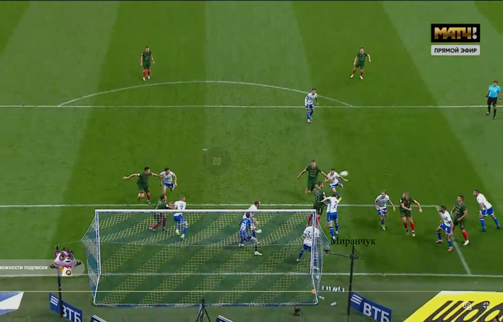 При стандартном положении футболисты «Динамо» играют персонально по сопернику — «Локомотив» еще до подачи мяч стянулся на ближнюю штангу, а Антон Миранчук играл с Николаем Комличенко, который не вбегал в штрафную площадь, а стоял в одной точке. Полузащитник бело-голубых выбирает неправильную позицию и после подачи углового даже не пытается побороться с нападающим «железнодорожников», результат — 2:3 на табло.