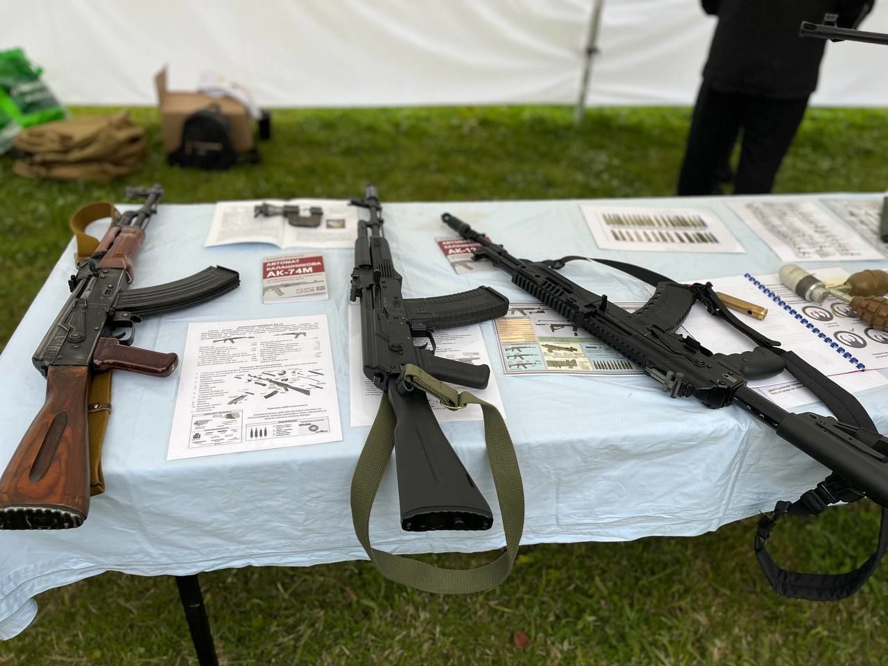На празднике клуб ZOV организовал интерактивную зону, где каждый желающий мог попробовать разобрать автомат, надеть бронежилет и узнать, как оказывать первую помощь раненому.