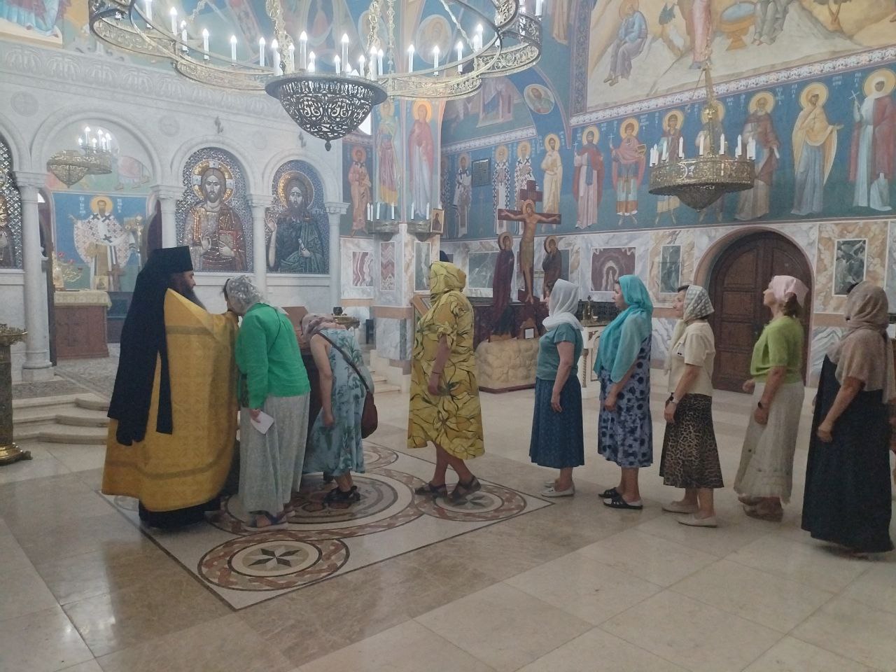 Субботним утром мы молились за Божественной литургией в Благовещенском кафедральном соборе, о заполняемости в тот день которого можно сказать, что "яблоку негде было упасть". Несколько сотен детей (учащихся церковно-приходской школы) в сопровождении преподавателей и воспитателей собрались в главном храме епархии для совместной молитвы и участия в таинстве Евхаристии. Одни ребята подходили к русскому священнику под благословение, другие просто здоровались с чужестранцами-пилигримами, а кто-то угощал гостей из России освященным хлебом.