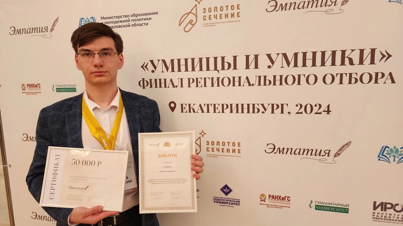 Никита, как призер финала регионального этапа, получил премию от фонда «Эмпатия» акционера корпорации