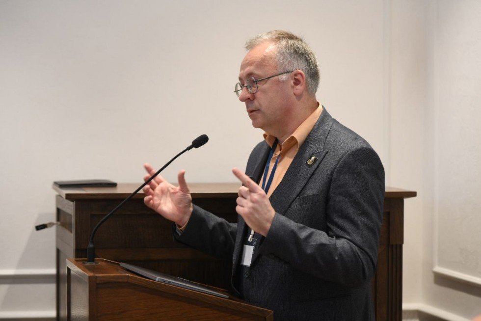 «Это не первая конференция по экклезиологии, которую проводит наш Институт. Мы стараемся последовательно заниматься православной экклезиологией и христианским учением о Церкви. В этом году такая тема связана еще и с юбилеем, который мы сегодня отмечаем — 75-летием отца Георгия Кочеткова, основателя и первого ректора Свято-Филаретовского института, человека, который дал импульс интересу к экклезиологии в СФИ. Надеемся, что эта конференция может стать нашим скромным  подарком отцу Георгию, — сказал Дмитрий Гасак, первый проректор СФИ, открывая конференцию. — Сегодня хотелось бы вспомнить также еще одну дату — 165 лет назад преставился ко Господу Алексей Хомяков, основатель славянофильства, человек, с которого обычно начинают речь, говоря об экклезиологии в православном богословии XIX и XX века».
