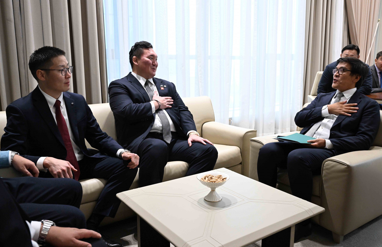 Бишкек, «Ынтымак Ордо», 3 октября 2025 года, – Заместитель Председателя Кабинета Министров Кыргызской Республики Эдиль Байсалов провёл встречу с 69-м ёкодзуной, выдающимся японским борцом сумо Хакухо Сё, который признан одним из величайших спортсменов в истории данного вида единоборств.