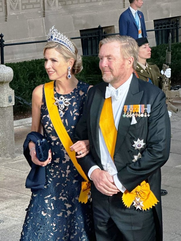 Королевы и принцессы надели тиары, и в Люксембурге пролился бриллиантовый дождь. Королева Матильда надела тиару Девяти провинций, королева Максима – сапфировую, принцесса Елизавета – тиару, подаренную ей на 18-летие, а принцесса Амалия – бриллиантовую, от королевы Эммы. Принцесса Клэр со стороны Люксембурга носила изумрудную тиару от Chaumet. Тиары носили также сестры великого герцога Анри, а также сестра и невестка Стефании со стороны графов Ланнуа.