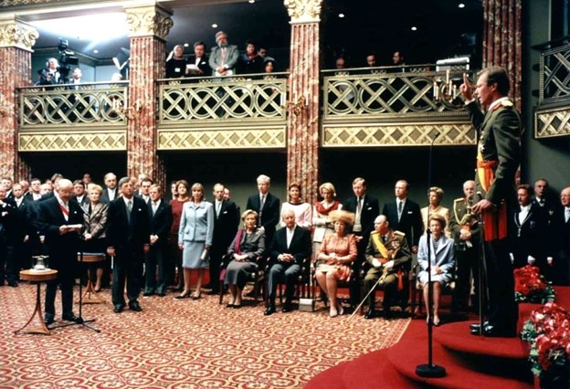 После подписания Великогерцогского указа премьер-министр Люк Фриден выступил с речью. Речь главы правительства завершила этот первый акт. Люк Фриден воспользовался этим моментом, чтобы поблагодарить бывшего Великого Герцога за годы его службы. «Вы вступили в эту должность с удивительной уравновешенностью, сочетая достоинство и близость, строгость и открытость, чувство долга и гуманность», — заявил премьер-министр. «Вы не выбирали эту роль. Она дана вам по праву рождения. Но люксембургский народ, все мы, не могли бы и желать лучшего суверена».