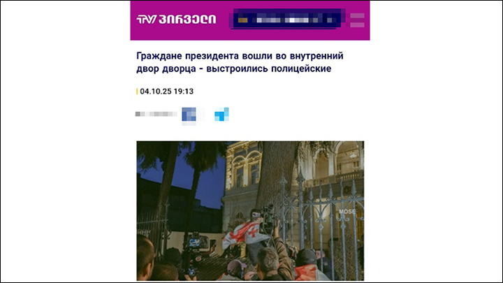 ПРОТЕСТУЮЩИЕ ПОПЫТАЛИСЬ ПРОРВАТЬСЯ В ПРЕЗИДЕНТСКИЙ ДВОРЕЦ. СКРИНШОТ СТРАНИЦЫ САЙТА TVPIRVELI.GE (АВТОПЕРЕВОД)