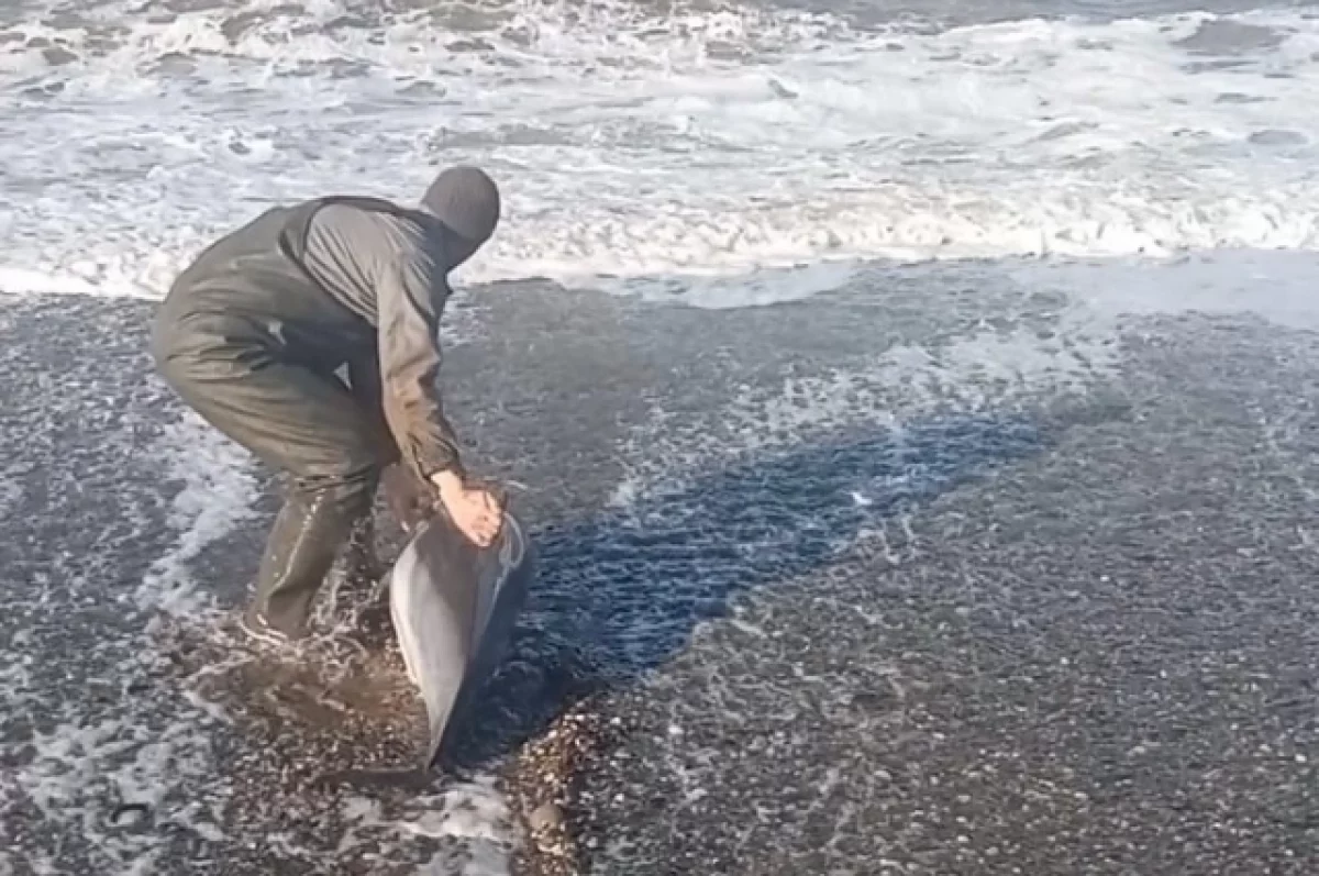 «Глаза ему промыл от песка, в сапогах прошел до волны, до куда смог, а там уже волна, легче, дельфин всплывает. В первый раз он ушел и, возможно, потерял локацию, отплыл, круг сделал и вернулся. Во второй раз покружил рядом с берегом и уже уплыл в море. Жена сказал, что вроде вдалеке мать была этого дельфиненка, плавник всплывал, детеныш издавал звуки. Как я мог не помочь, жалко же».