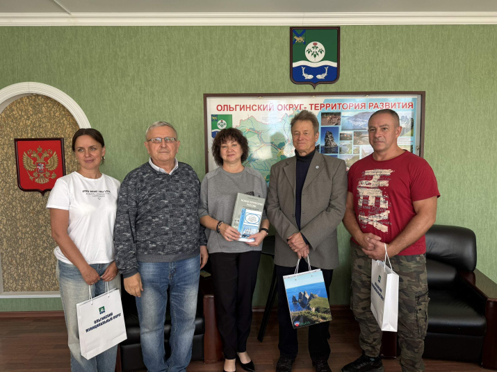 После официальной части гости встретились с и.о. главы округа Ларисой Юрьевной Володиной. За чашкой чая они обсудили уникальность Ольгинского округа, актуальные географические проблемы и вопросы. В подарок муниципалитету члены РГО передали несколько книг собственного авторства об исследованиях Дальнего Востока и Приморья. А членам Общества были вручены памятные сувениры Ольгинского округа. Ждем членов ПКО РГО - ОИАК к нам в гости.