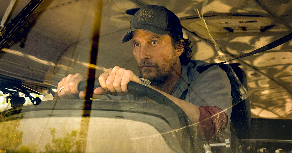 — главный герой Кевин Маккей (Мэттью Макконахи) явно переживает не лучший период в своей жизни. Много лет назад уехав из родного городка в Северной Калифорнии, он развелся и вернулся в родной дом два месяца назад, чтобы похоронить отца, с которым у него были непростые отношения. Теперь он вяло ругается с сыном-подростком Шоном, который предпочитает жить с матерью, и ради подработки устраивается водителем школьного автобуса. В один особо жаркий и сухой ноябрьский (Калифорния!) день 2018 года от очередного искрящего кабеля загорелся склон под городком с красноречивым названием Парадайз. Кевин берется вывезти 22 ребенка и сопровождающую учительницу Мэри (Америка Феррера) из опасной зоны и отвезти в школу, откуда их заберут родители. В самый неудобный момент отключается радиосвязь, и обычная вроде работа превращается в кошмар, когда выясняется, что пожар, позже названный «Кэмп», распространился на дома и практически сжег Парадайз, который восстанавливается до сих пор. В пожаре сгорели 11 тыс. домов и погибли 85 человек. Перед нами произошедшая в реальности история, так что ставки тем более высоки, а ползущий к автобусным окнам огонь получает документальное измерение;