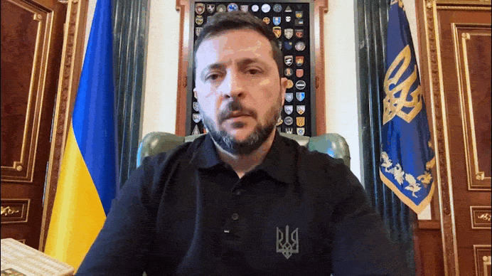 Зеленский истерично требует от Запада "больше защиты" и ускорить реализацию договорённостей, особенно в отношении ПВО. А ещё – "одностороннего прекращения огня". GIF TГ-канала Zelensky official