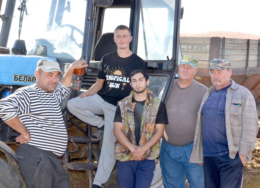 Современный Кировец с 12-ти метровой сеялкой-культиватором, управляет которым Александр Дегтярев, как раз подъехал, чтобы загрузиться семенами. Семена в хозяйстве используют только первой репродукции и сорта, проверенные временем. Ярко-оранжевое зерно (такой цвет ему придает препарат, которым в обязательном порядке протравливают семена) упругой струей поступает со шнека в отсеки сеялки. Подвозит семена к сеялочному агрегату на МТЗ-82 механизатор Иван Ворона. Контролирует подачу семян засыпщик Исмаил Вациев. С прицепа второго трактора, под управлением Сергея Морозова, подается удобрение. Буквально несколько минут и мощный Кировец снова готов к заделке семян.