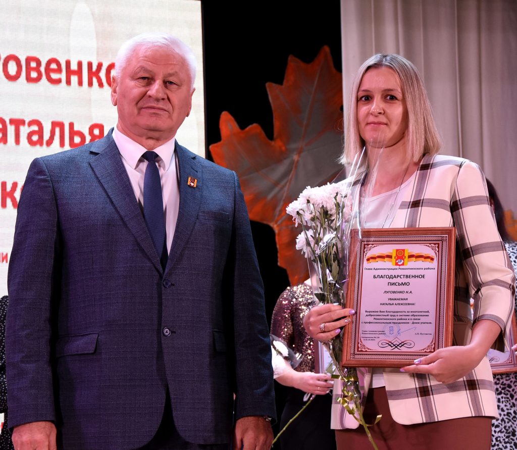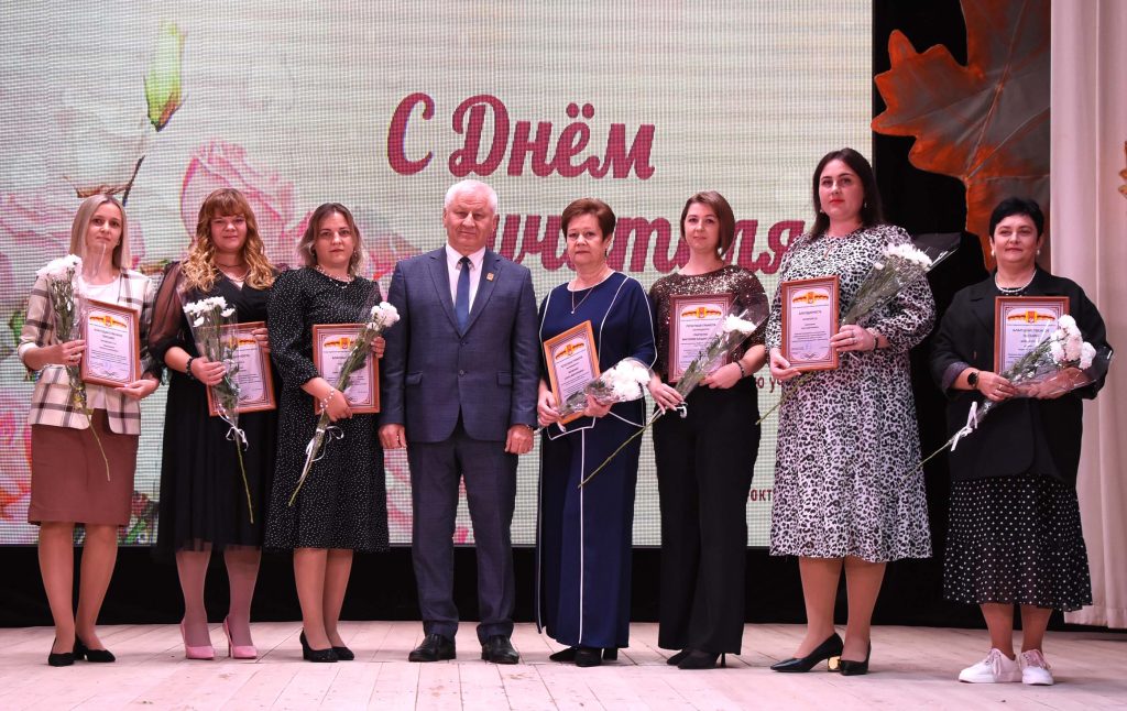 — Именно от учителя, от его способностей и профессионализма зависит будущее наших детей и завтрашний день нашего региона, нашей большой и великой страны. Наш район славится успехами ваших учеников во всех областях нашей деятельности: будь то спорт, культура, наука, здравоохранение, сельское хозяйство. В этом году наши аграрии впервые стали лидерами в области по урожайности, и в пятерке лучших по намолоту. По итогам управленческой деятельности наш район в рейтинге занимает 4 место. И в этом, без сомнения, есть ваша заслуга, — отметил глава муниципалитета.