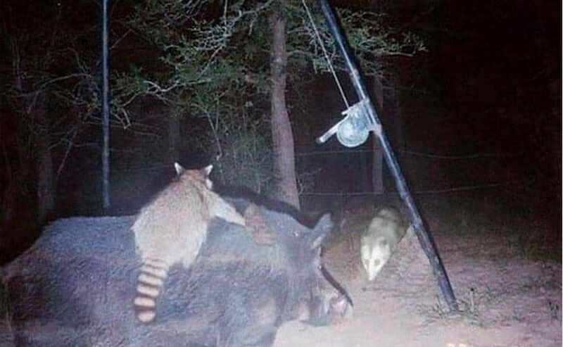 Енот оседлал кабана, чтобы сразиться с опоссумами