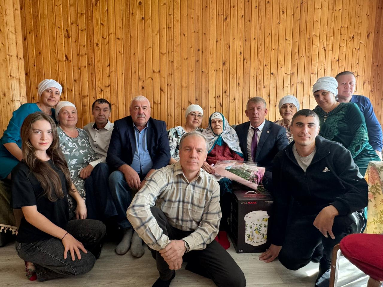 С юбилеем труженицу тыла поздравили заместитель руководителя Исполнительного комитета Айрат Залялов и глава Малоцильнинского сельского поселения Гумер Халитов. Гости вручили долгожительнице поздравительное письмо от имени Президента РФ Владимира Путина и памятный подарок от имени Главы района Марата Гафарова.