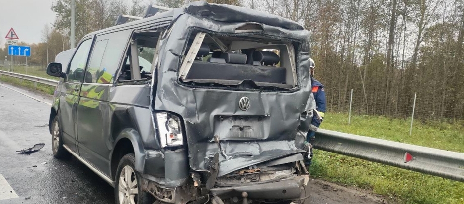 Авария случилась сегодня в 12:49 на 107-м километре федеральной автодороги А-114. По предварительным данным, водитель 1972 года рождения, управляя грузовым автомобилем «Донгфенг» с полуприцепом «Тонар», двигался по правой полосе в направлении Вологды со стороны Санкт-Петербурга. Он совершил столкновение с автомобилем «Фольксваген Мультивен», под управлением водителя 1976 года рождения, который стоял на светофоре в попутном направлении.